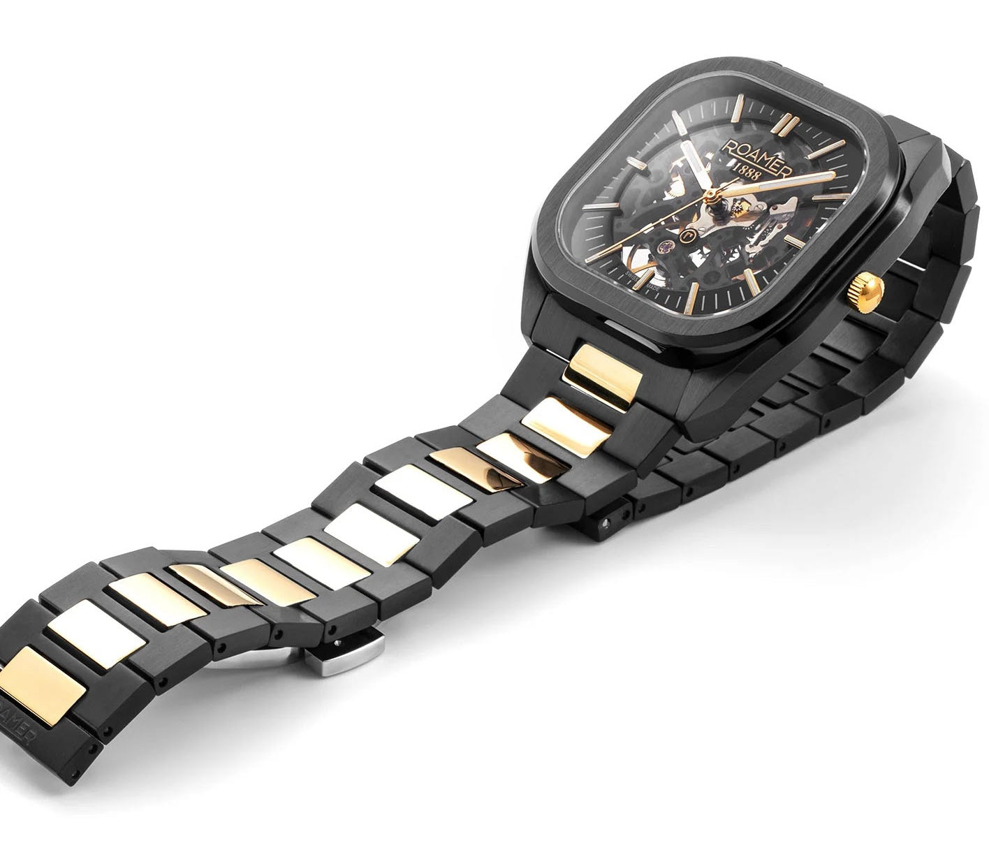 Roamer Watch Mechano Black Skeleton 985986 45 85 20. Roamer oF Switzerland has been synonymous with high quality Swiss watches in combination with classically elegant designs since 1888. The brand steadily continues its success story with ongoing innovations, excellent materials, exquisite craftsmanship and precise Swiss movements. Perfect attention to detail and an exceptional & personal commitment makes ROAMER’s timepieces truly unique.