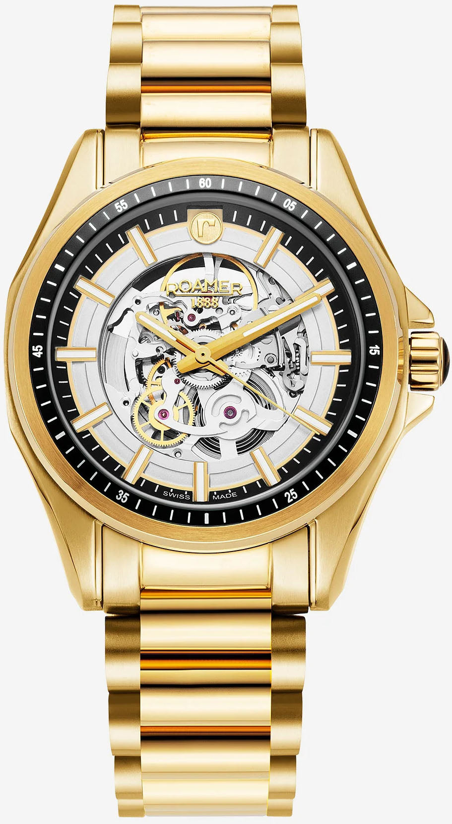 Roamer Watch Rockshell Mark III Skeleton Black 220984 48 55 20. Roamer oF Switzerland has been synonymous with high quality Swiss watches in combination with classically elegant designs since 1888. The brand steadily continues its success story with ongoing innovations, excellent materials, exquisite craftsmanship and precise Swiss movements. Perfect attention to detail and an exceptional & personal commitment makes ROAMER’s timepieces truly unique.