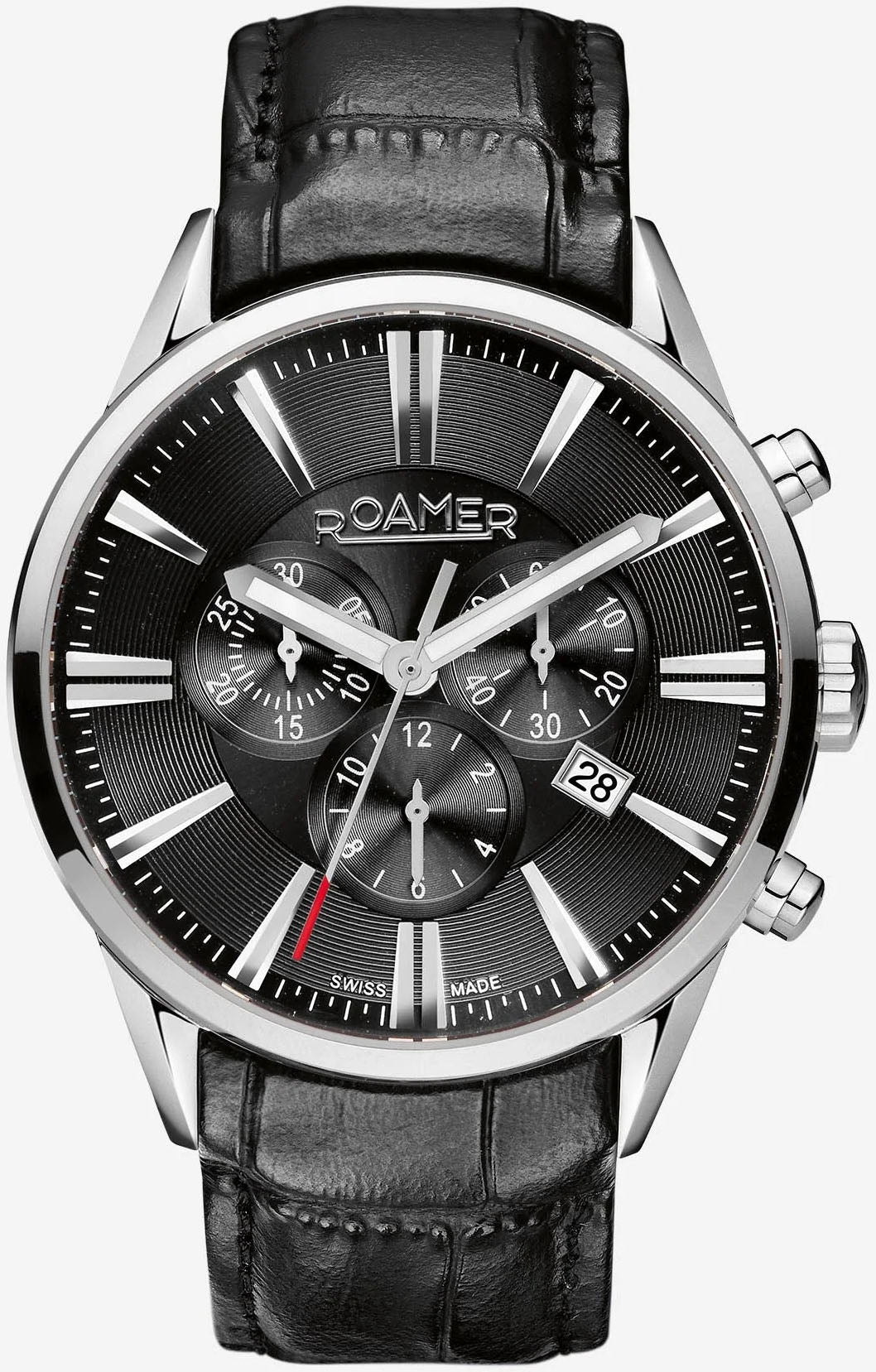 Roamer Watch Superior Chrono Black 508837 41 55 05. Roamer oF Switzerland has been synonymous with high quality Swiss watches in combination with classically elegant designs since 1888. The brand steadily continues its success story with ongoing innovations, excellent materials, exquisite craftsmanship and precise Swiss movements. Perfect attention to detail and an exceptional & personal commitment makes ROAMER’s timepieces truly unique.