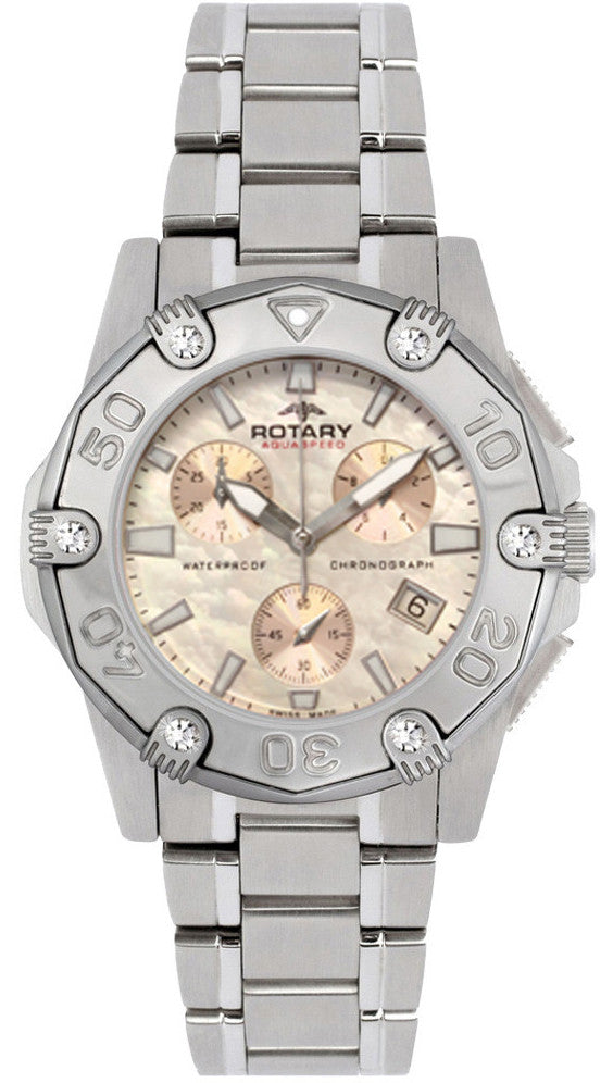 Rotary Watch Aquaspeed Ladies Steel Bracelet. Rotary Aquaspeed is a new range of unisex contemporary sports watches, perfect for those looking for a robust yet stylish timepiece to match their pace and performance. Featuring professional instrumentation such as chronographs and circular slide rules, these models are hugely practical as well as chic.
