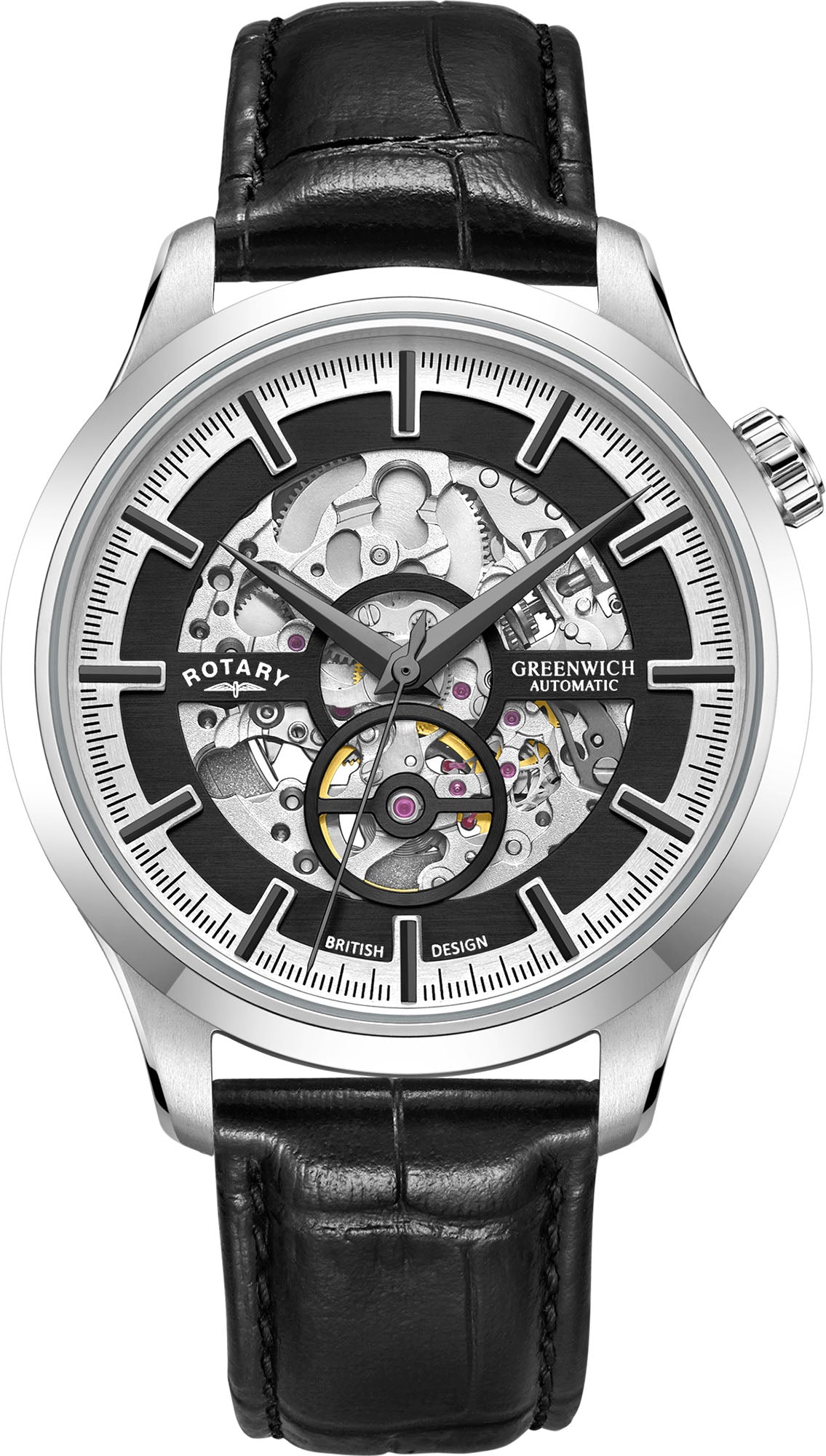 Rotary Watch Greenwich Mens GS02945/87. Simple, stylish skeletons: the Greenwich family embodies the quality and attention to detail that epitomises Rotary watches.