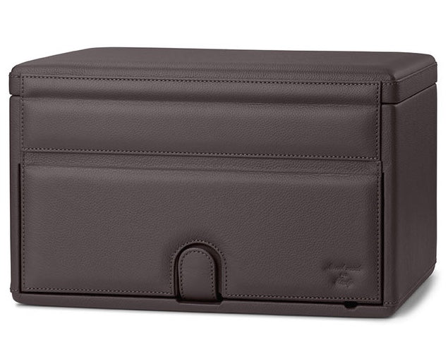 Scatola del Tempo Watch Winder 7RT Bi Colour 02069.MCSIL. Full leather case with 3 programmable winders plus storage space for 4 watches with leather straps or bracelet suitable for regular size watches and oversize ones, with an extra compartment for straps. Programmable by Bluetooth technology and app to be downloaded on the smartphone, operates on batteries with an average life of 3 years.
