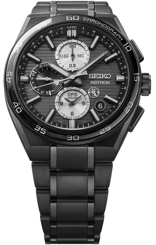 Seiko Astron Watch GPS Solar Dual Time Chronograph in Night Sky Black SSH179J1. Astron was created from Seiko’s passion for innovation, and now, under the design theme of ‘Solidity,’ a series of solar timepieces have been created for the innovative future ahead for Seiko watchmaking.