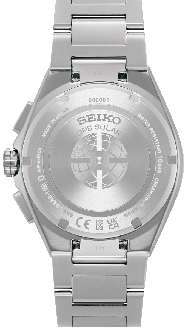 Within a super hard coated titanium case, under dual sapphire glass crystal is a dark ‘night black’ dial, with a vertical subdial layout – a first for Astron. This model has its own contemporary feel, with its sleek lines, slim profile, and compact, angular design. It has an almost seamless flow from the case, through the lugs and to the bracelet. Its black ceramic bezel that is also protected by a super-hard coating. This piece was designed to have a low centre of gravity, making it fit well on the wrist.