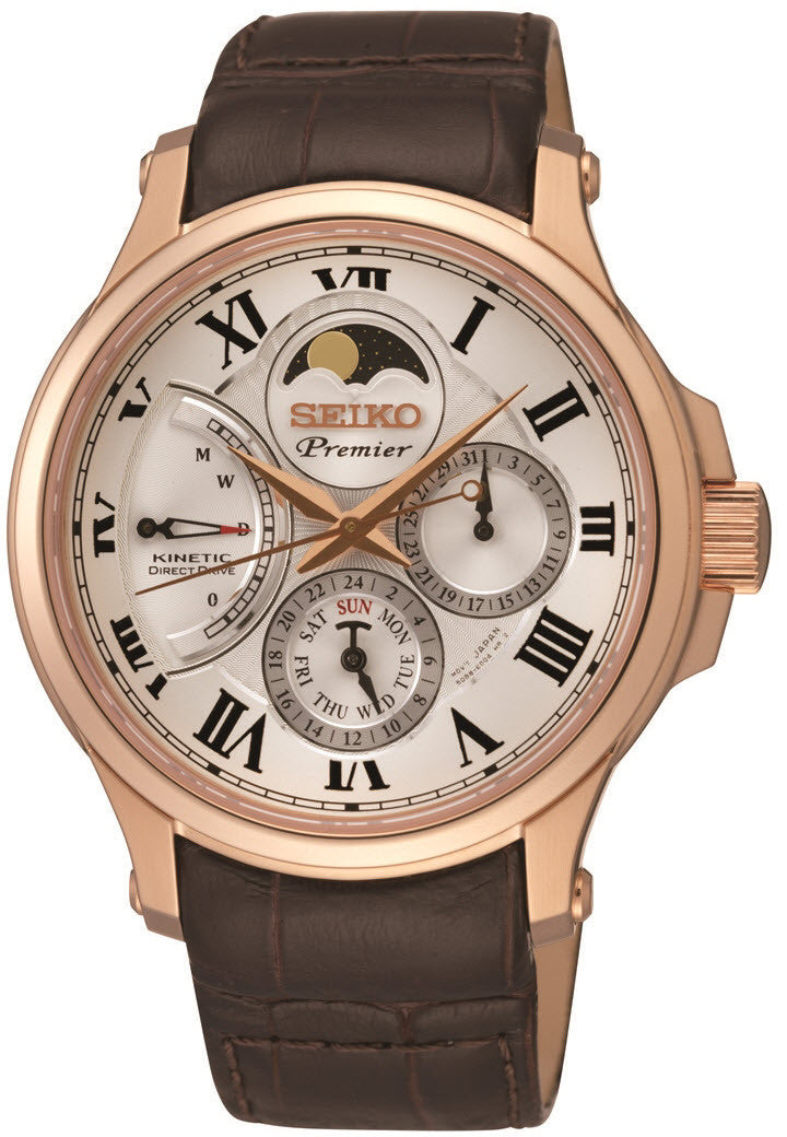 Seiko Watch Premier. The SEIKO Premier collection combines classically refined inspiration with subtly modern expression. Premier has established itself as SEIKOs leading dress watch collection. The Premier design is inspired by the eternal beauty of neo classical architecture. Each Premier case has the solidity and grace of a Palladian villa and each dial has a depth of sculpted detailing that draws its inspiration from the architraves of a Greek temple. However, these classical features are also expressed with a modern flair. Premier is classical yet modern, reverential yet bold, restrained yet eye catching.