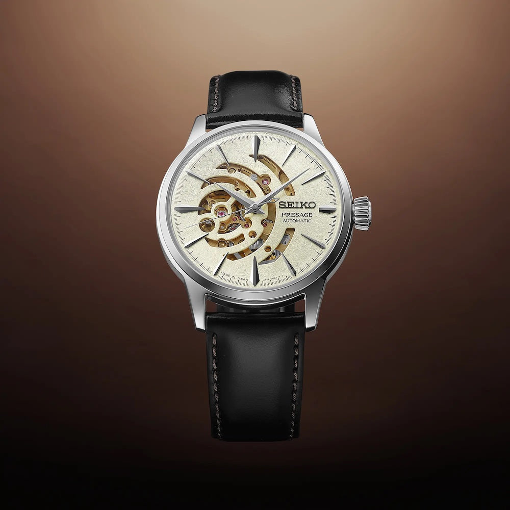 In Japan, traditionally ‘Nomunication hour’ – a hybrid of nomu (drink) and communication – is after 5pm, when it’s cocktail hour and time to talk things over. The Seiko Presage Cocktail Time collection was inspired by this Japanese tradition of finishing the working day off with a cocktail and a chat – with each timepiece named after drinks mixed by Hisashi Kishi, head bartender and owner of Star Bar in Tokyo’s Ginza area and a past winner of the International Bar Association World Championships.