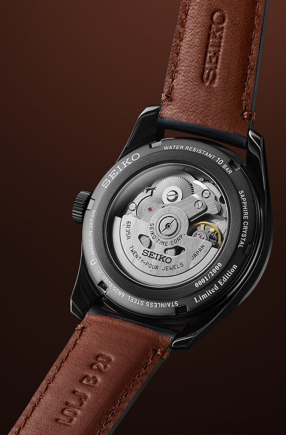 The dial and underside of the strap features the traditional Japanese colour “Kakiiro, a rich scarlet-brown tone, the colour of the costumes traditionally worn by Kabuki masters.