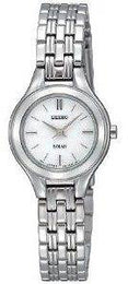 This stylish dress watch for ladies is part of the Seiko Solar collection. The timepiece gets energy from both natural and artificial light, which means that no battery change will ever be required.