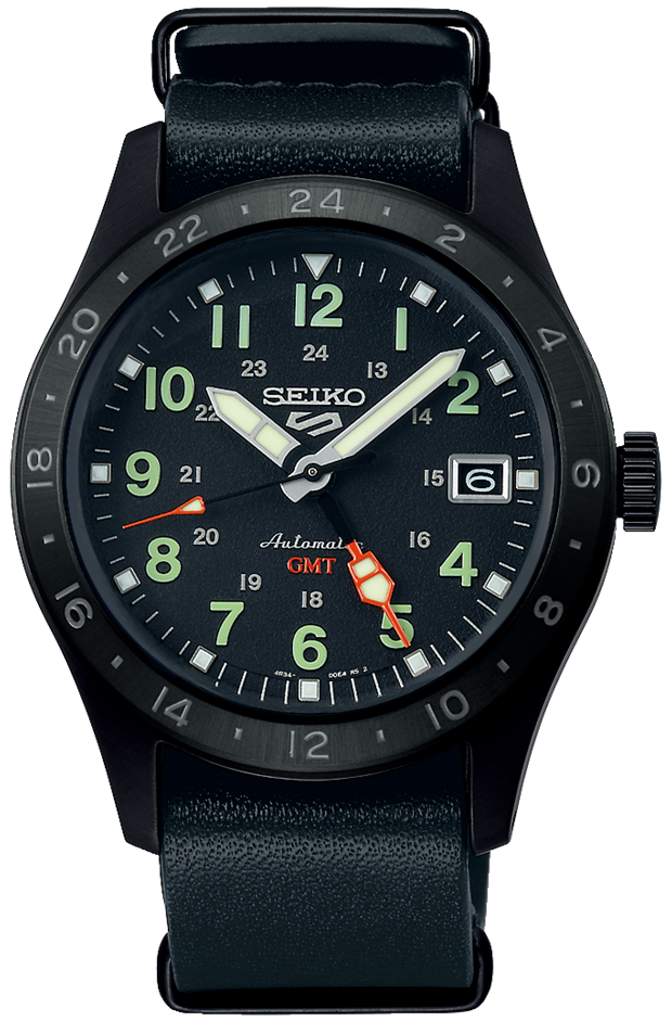 Seiko Watch 5 Sports Field Deception Mechanical GMT SSK025K1. The Seiko 5 Sports Field collection was created with an ‘in the field’ military design – taking inspiration from a style originally called a ‘trench watch,’ created to be robust and reliable in tough conditions – echoing the Seiko 5 Sports characteristics.