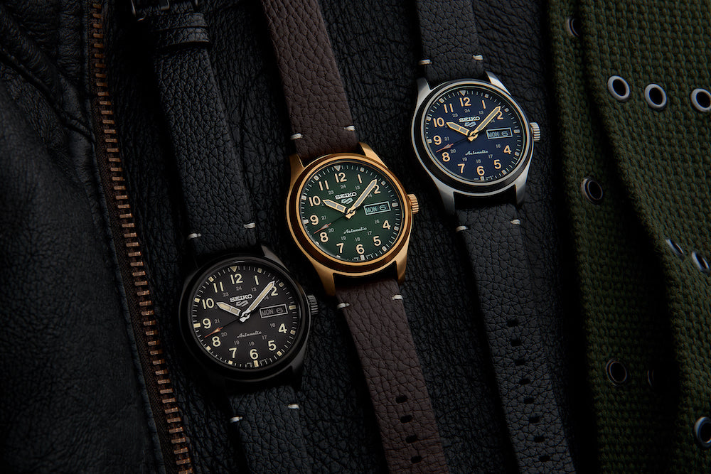 These watches have been created with an 'in the field’ military design – taking inspiration from a style originally called a ‘trench watch,’ created to be robust and reliable – echoing the Seiko 5 Sports characteristics.