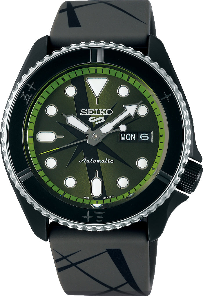 Seiko Watch 5 Sports One Piece Roronoa Zoro Limited Edition SRPH67K1. A Seiko 5 Sports collaboration with popular Japanese comic series ONE PIECE is here! The comic's characters, Luffy, Zoro, Sanji, Law, and Sabo, inspire the limited editions that capture the comic's central concept, "Inherited strength of will," and the Street Style design.