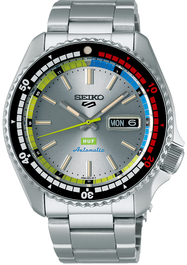 Seiko Watch 5 Sports x HUF Collaboration II Limited Edition SRPL33K1. This watch is the second limited edition collaboration between Seiko 5 Sports and HUF, the popular skateboarding and streetwear fashion and lifestyle brand.