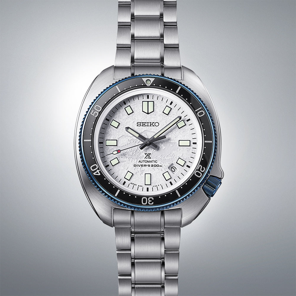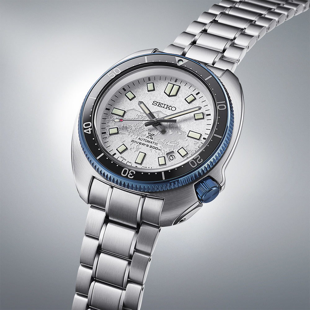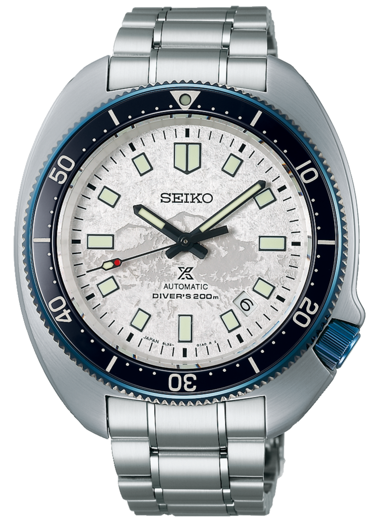This timepiece is a modern re-interpretation of the ‘Uemura Diver’ – the 1970 Seiko Diver’s watch which proved itself in extreme conditions when worn by Japanese adventurer Naomi Uemura during his 12,000-kilometre Arctic Circle dogsled expedition.