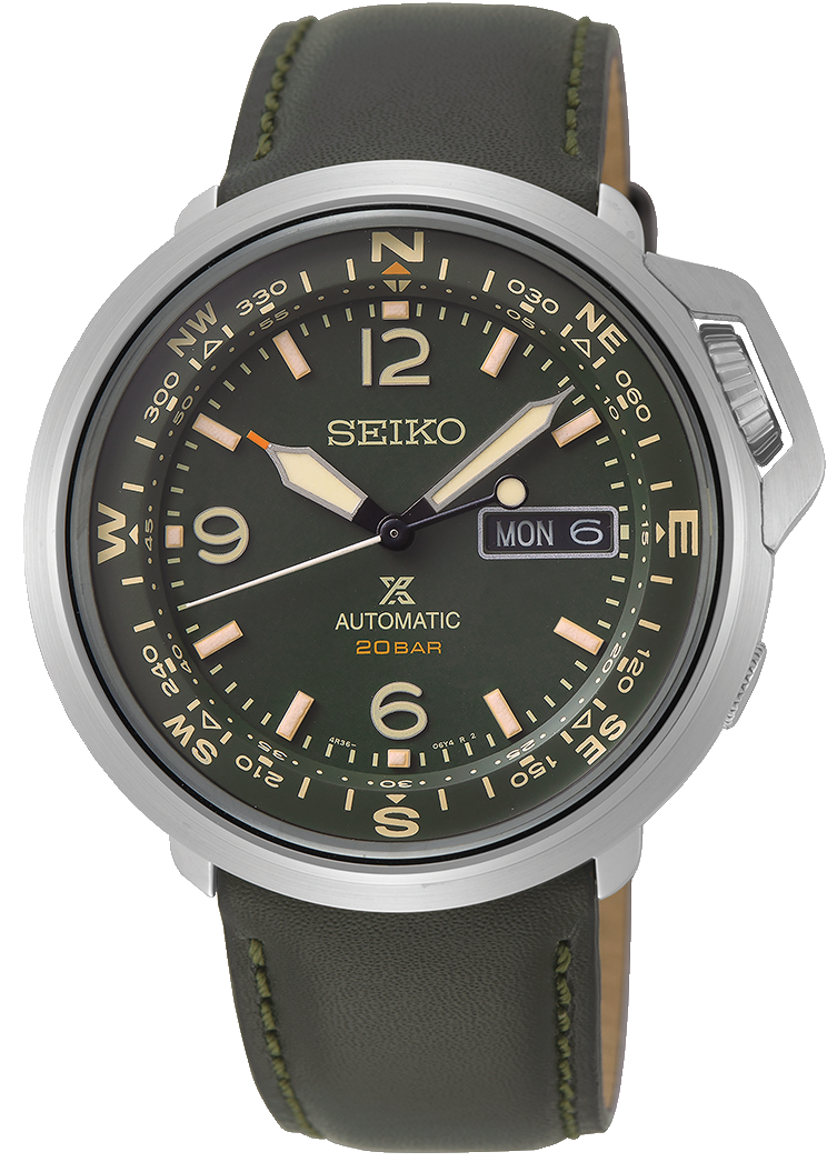 Seiko Watch Prospex Mens SRPD33K1. The perfect design for trecking and all outdoor activities. The watch features an inner rotating compass bezel, with unique crown guard providing improved protection.