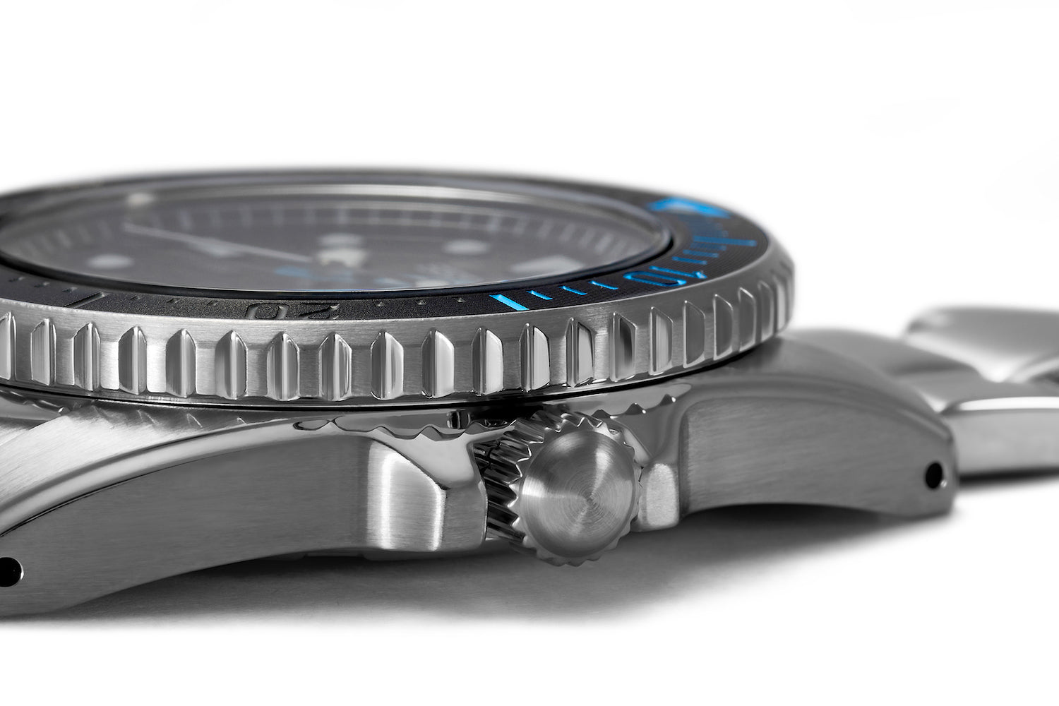 The dial features the PADI ‘Earth’ pattern, along with light blue colour highlights for high legibility in deep waters to clearly demonstrate the time elapsed whilst diving.