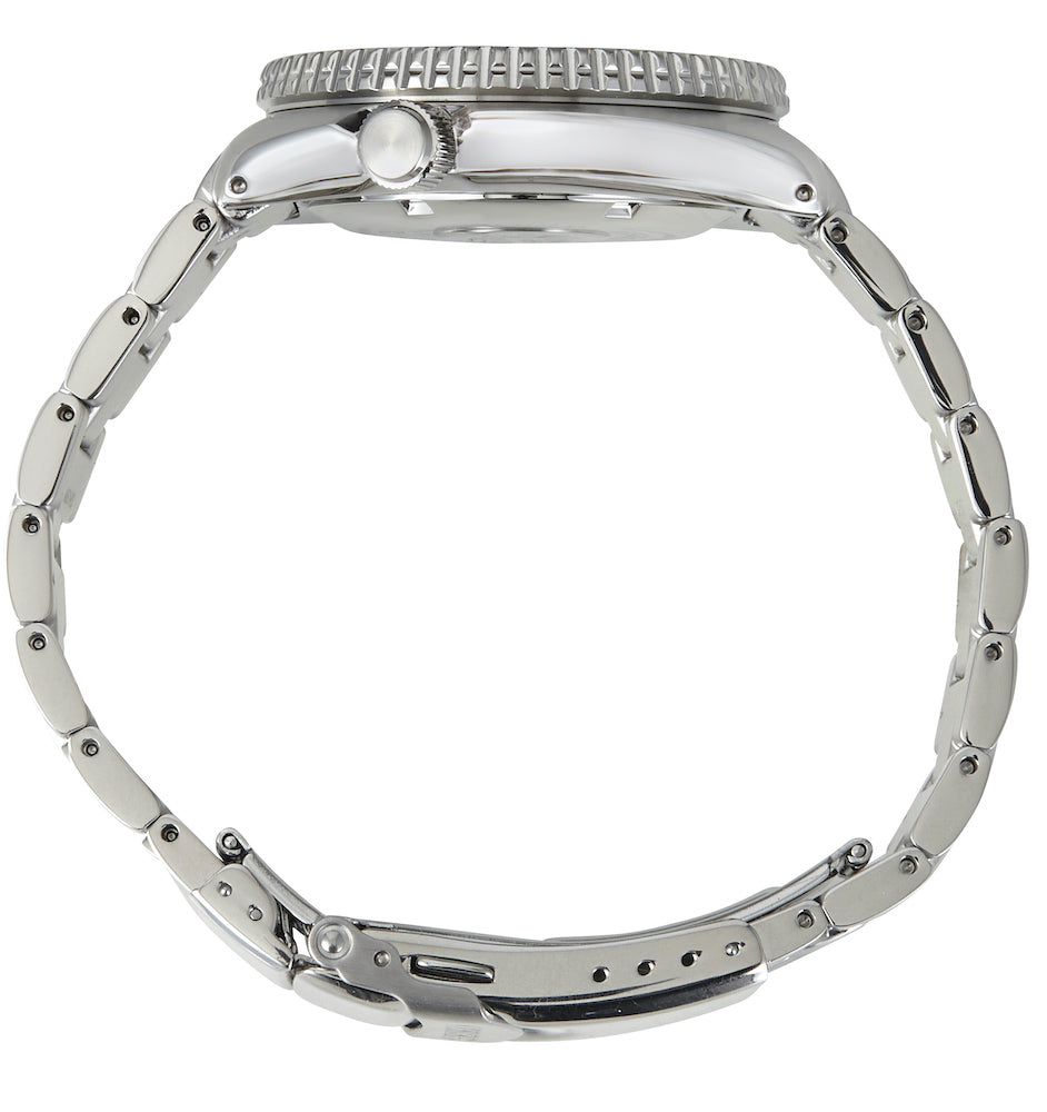 Hidden within the Seiko Prospex Save the Ocean SRPD21K1 watch is the remarkable 4R36 automatic winding movement, a Japanese manufactured calibre which offers an impressive power reserve of 41 hours, classic hour, minute and seconds function and a handy day date window at 3 o clock. Each of these functions are beautifully displayed on the colourful ocean blue dial through large hands and rounded indexes coated in glow in the dark Lumibrite for easy legibility in low lighting. To complete the look of this Seiko Prospex Special Edition watch, a sophisticated stainless steel bracelet is added alongside a three-fold clasp with secure lock, push button release and diving extension.