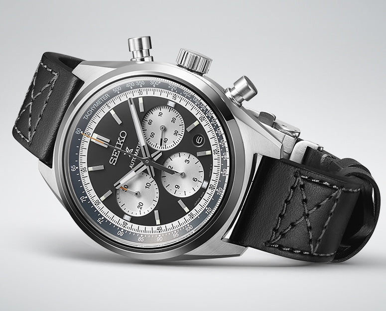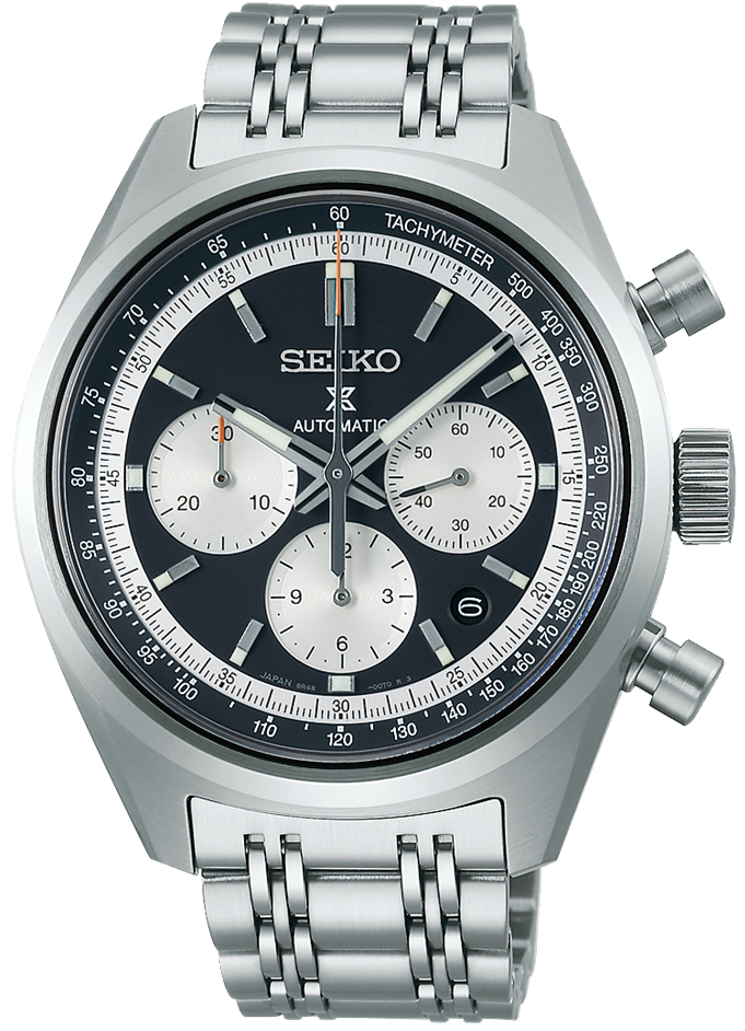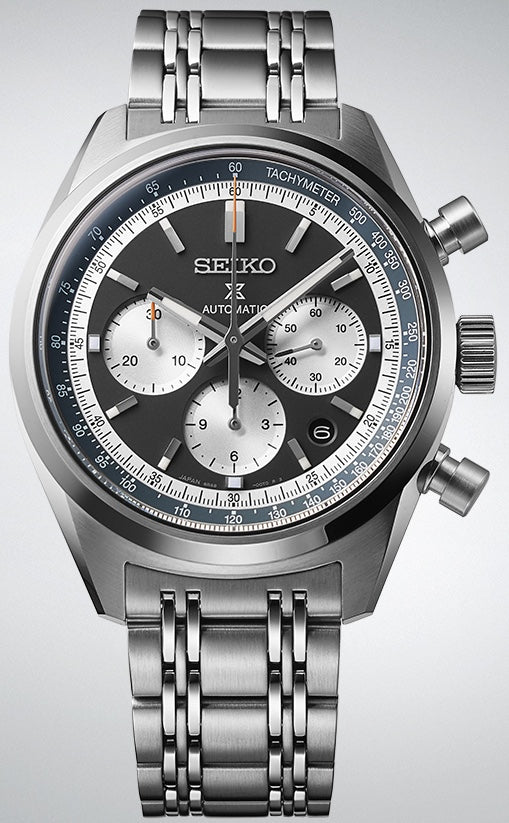 Prospex Speedtimer 'Panda' 1972 Chronograph Re-interpretation Limited Edition Seiko 100th Anniversary. This Prospex piece is a recreation of the 'Panda' Chronograph from 1972. The original evolved from the first Speedtimer (6139) in 1969 and is revived again to achieve a modern sports aesthetic.