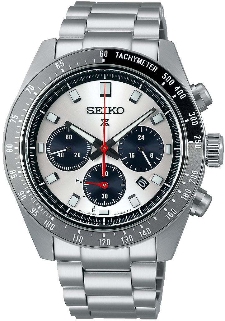 This solar powered chronograph timepiece is from the Prospex Speedtimer watch collection which represents Seiko’s professional timekeeping heritage.