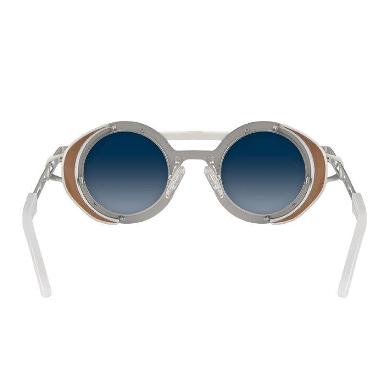 Lenses: CR39 lenses colored in gradient blue to transparent with blue anti-reflective coating on the inside. Category 2. 100% UVA/UVB protective lenses.