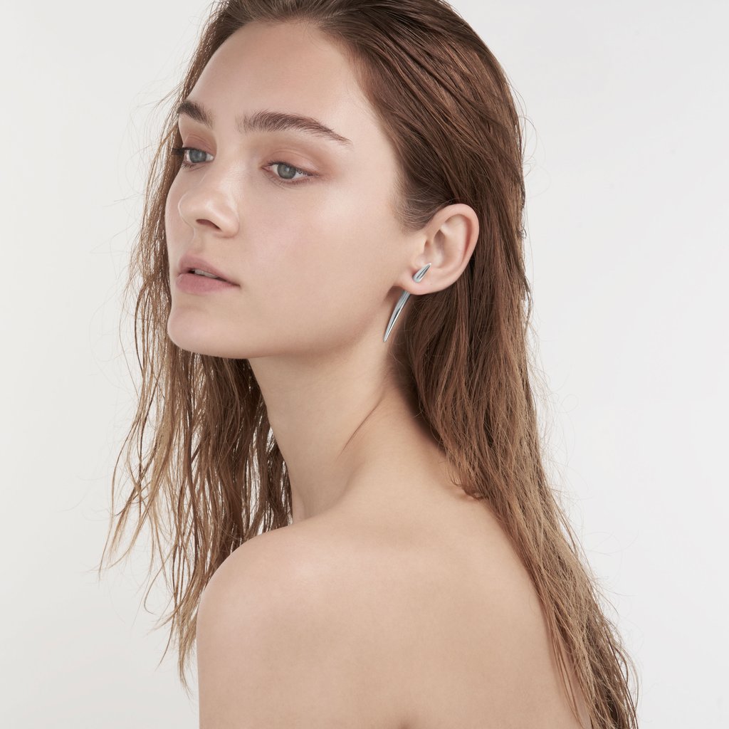 Crafted in sterling silver, this single earring is a standout design from the Quill collection. As with the House's iconic Hook earrings, an unbroken curve is created which perfectly echoes the shape of the face. Can also be purchased in pairs.