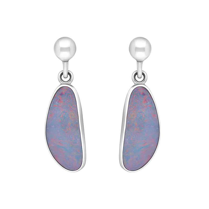 Sterling Silver Opal Abstract Oval Doublet Drop Unique Earrings (UNQ-8623)