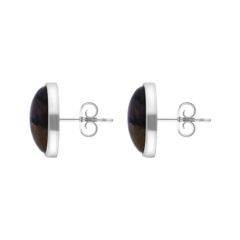 These sterling silver stud earrings feature uniquely beautiful Blue John stones, each cut into an elegant oval shape measuring 14 x 10mm. The distinctive blue and purple banding of Blue John adds natural sophistication and rarity to this classic design. Expertly crafted for secure wear and lasting shine, these earrings combine refined artistry with the captivating allure of a rare gemstone, making them an ideal choice for collectors and those seeking timeless, versatile accessories for both everyday and special occasions.