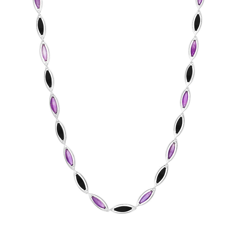 Sterling Silver Whitby Jet and Amethyst Marquise Necklace