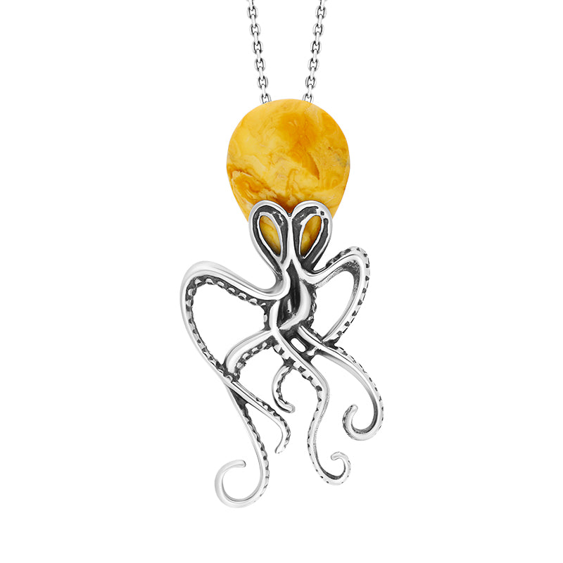 Crafted from high-quality sterling silver, this Amber Octopus Pendant showcases a striking design that merges marine elegance with timeless craftsmanship. The warm amber stone captures light beautifully, enhancing the natural curves and intricate details of the octopus form. Perfect for those who appreciate distinctive jewelry, this pendant offers both durability and a sophisticated aesthetic. Its versatile size makes it suitable for everyday wear or special occasions, adding a touch of refined ocean-inspired charm to any outfit. An expert choice for collectors and style enthusiasts alike.