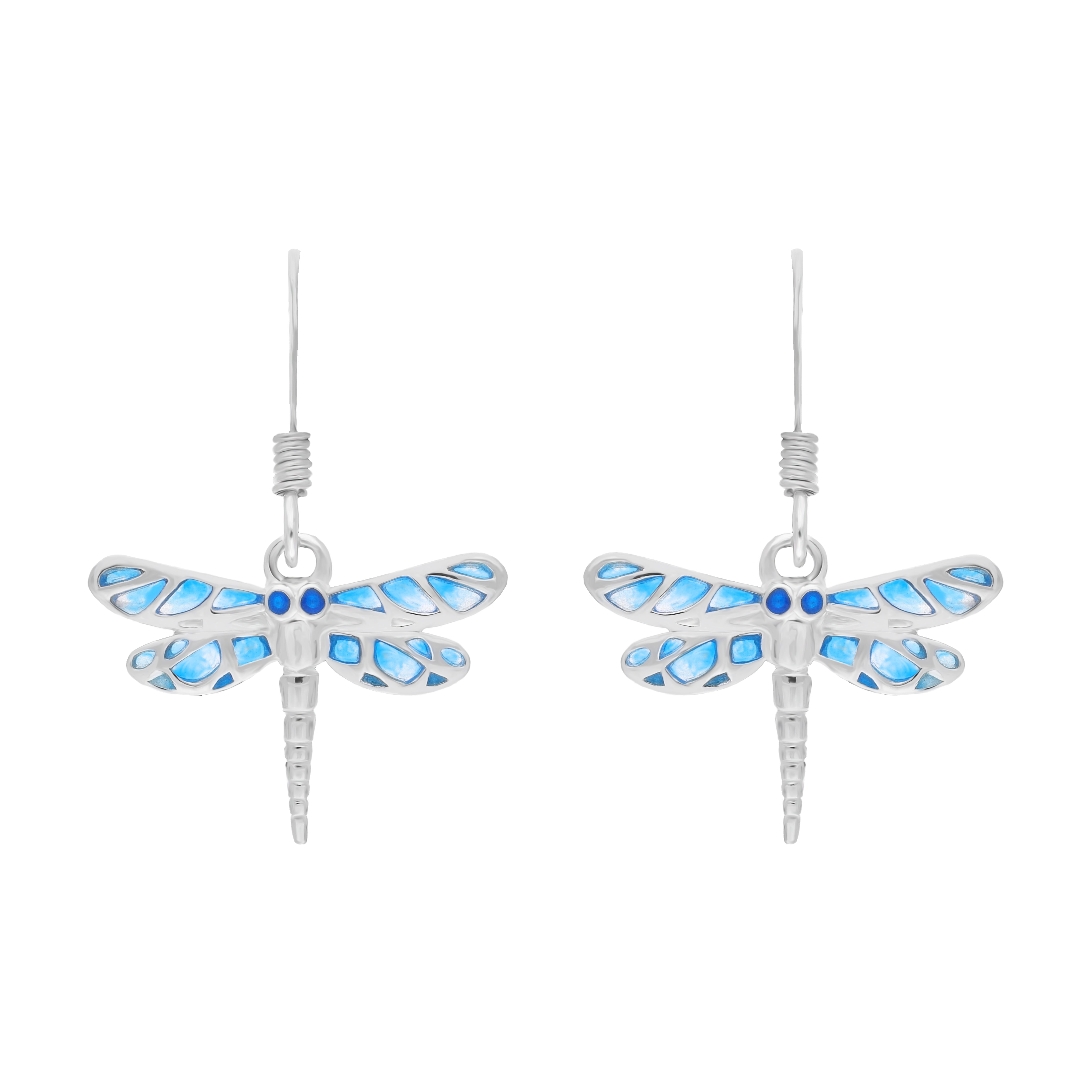Sterling Silver Blue Enamel Dragonfly Hook Earrings - E22254 (CHS-103)