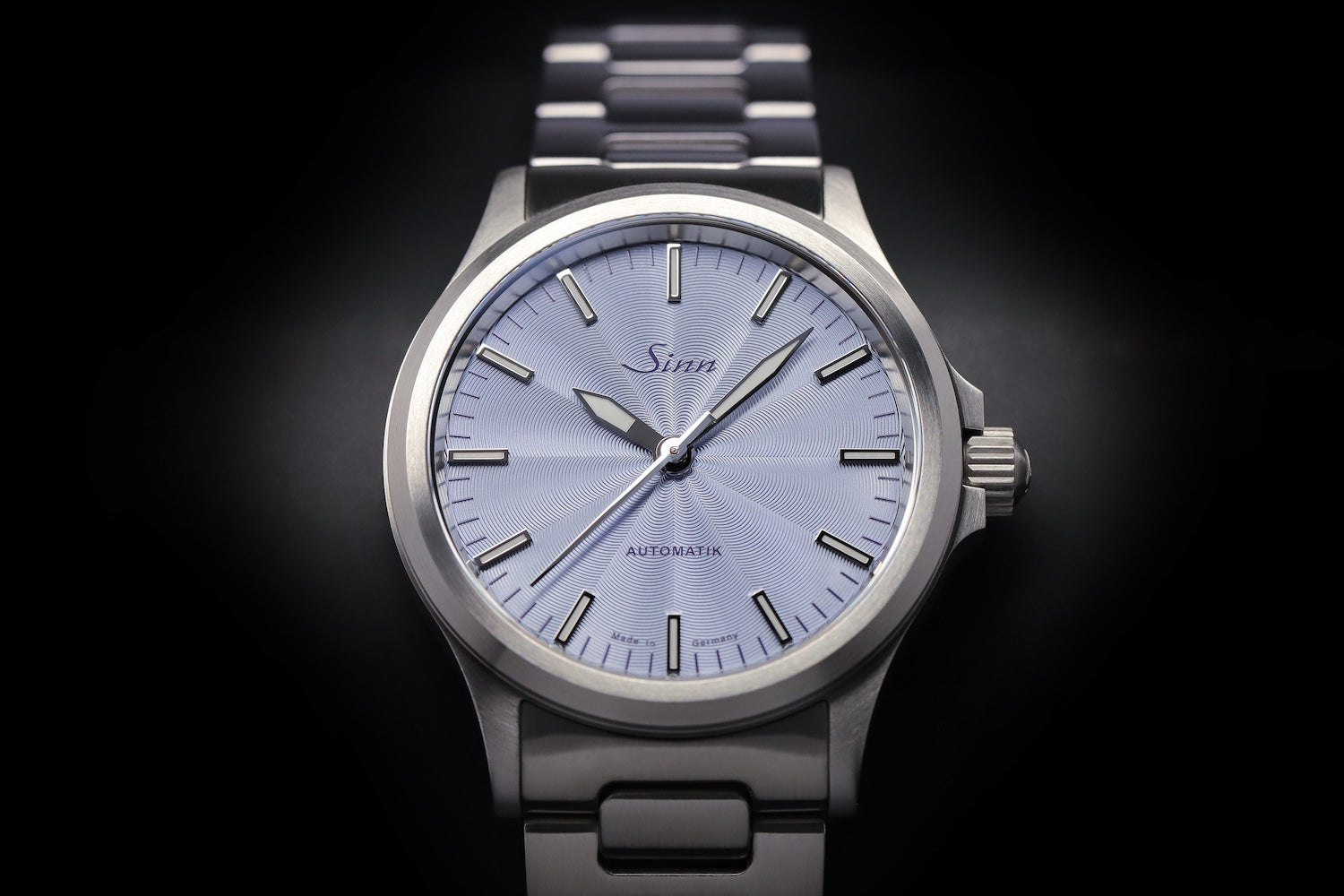 Sinn 556 Ice Blue Bracelet Limited Edition Watch 556.0121 Bracelet. Make a statement with colour and style: With the new watches in the popular 556 series, we’re setting fresh accents. In addition to the ice blue version, the watches are also available in sand, mauve and sage. Four pastel tones, a clear expression of individuality, combined with a distinctive design language and uncompromising functionality. Particular attention is given to the finely executed guilloché dial. It lends the watch a unique texture, surprising depth and subtle sophistication, creating a unique dynamic in its interplay with the ice blue hue. The result is an elegant touch paired with a contemporary design that appeals equally to women and men.