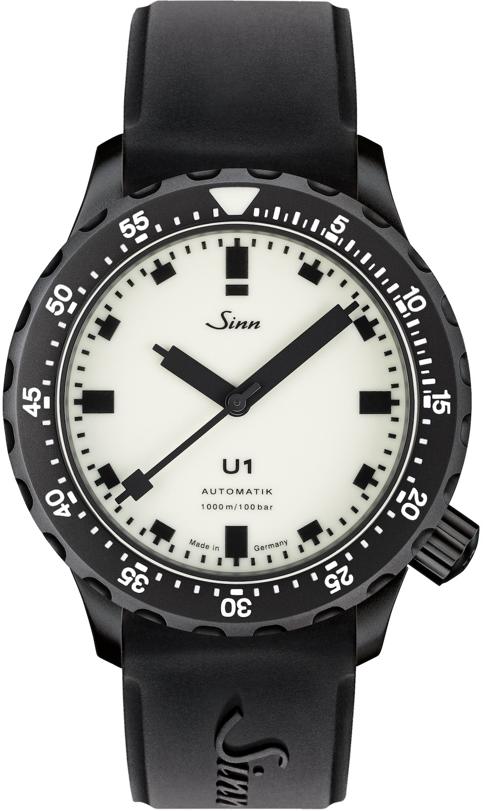Sinn U1 S L Black Rubber Limited Edition Watch 1010.0243 Black Rubber. When absolute readability becomes the priority, the U1 S L demonstrates what is technically possible. The highlight: the entire dial and the main marker on the rotating bezel glow intensely. In terms of its production, an innovative method is used to incorporate the luminous paint into a mould using a special casting process. After hardening, a hybrid ceramic component is created, which is joined to the metallic base dial. In the final processing step, the two combined components are printed. The result is rather remarkable, thanks to the high concentration and large surface area of the luminous paint, we achieve extreme luminosity and thus perfect readability, in a quality never seen before! The U1 S L also makes a powerful visual statement: with its distinctive design language and clearly reduced display, it can be worn at any time, even outside the water.