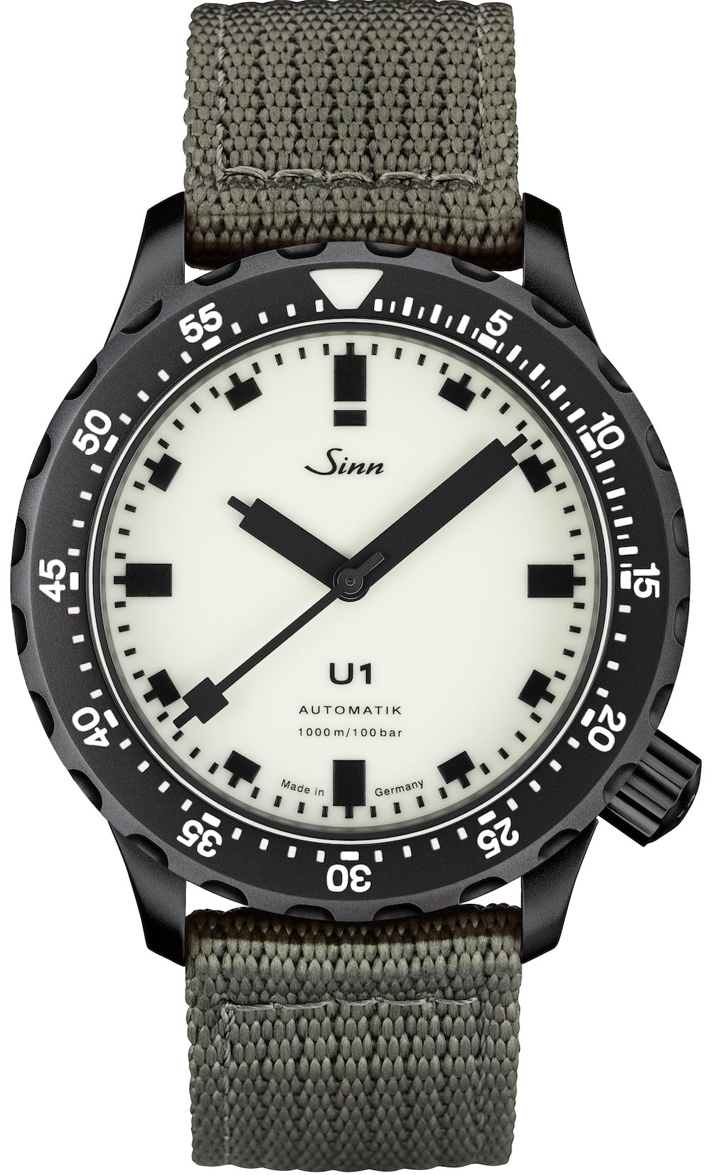 Sinn U1 S L Grey Canvas Limited Edition Watch 1010.0243 Grey Canvas. When absolute readability becomes the priority, the U1 S L demonstrates what is technically possible. The highlight: the entire dial and the main marker on the rotating bezel glow intensely. In terms of its production, an innovative method is used to incorporate the luminous paint into a mould using a special casting process. After hardening, a hybrid ceramic component is created, which is joined to the metallic base dial. In the final processing step, the two combined components are printed. The result is rather remarkable, thanks to the high concentration and large surface area of the luminous paint, we achieve extreme luminosity and thus perfect readability, in a quality never seen before! The U1 S L also makes a powerful visual statement: with its distinctive design language and clearly reduced display, it can be worn at any time, even outside the water.