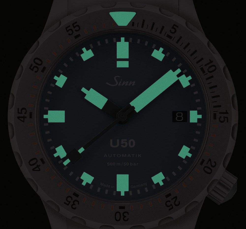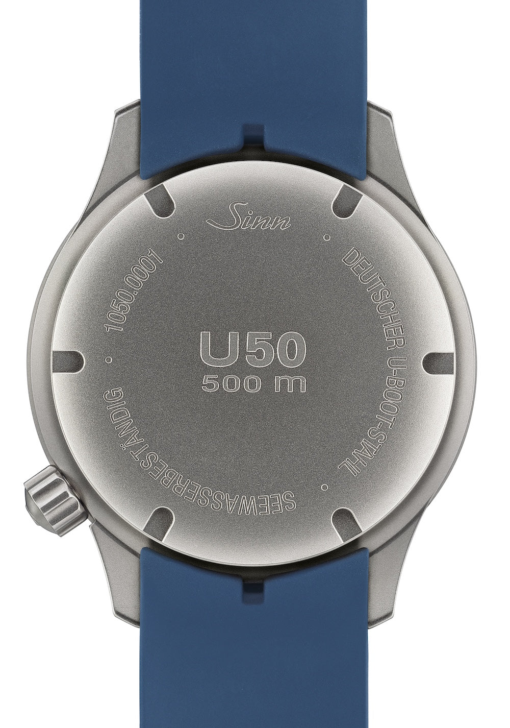 Sinn U50 B Blue Rubber Watch 1050.0101 Blue Rubber. The U50 B is a precision instrument for divers and at the same time a bold statement in design. The striking matt blue dial immediately draws the eye, signalling the highest level of professionalism and underlining the uncompromising functionality of this watch, not least thanks to the white, luminous indices and hands, which provide a perfect contrast. The result: a harmonious overall appearance with outstanding readability. In true SINN tradition, the U50 B combines well conceived design with technical excellence: the case and crown are made of high strength, seawater resistant submarine steel with the highest non magnetic quality, a material otherwise reserved for extreme maritime applications. The captive diver s bezel proves to be especially scratch resistant, as it has been further hardened with TEGIMENT Technology. A practical detail: the crown is positioned at 4 o clock to prevent pressure on the back of the hand. Whether for ambitious dives or as a reliable companion in everyday life, the U50 B excels in every respect, as confirmed by independent testing. Its suitability for underwater use has been verified and certified by an independent institute.