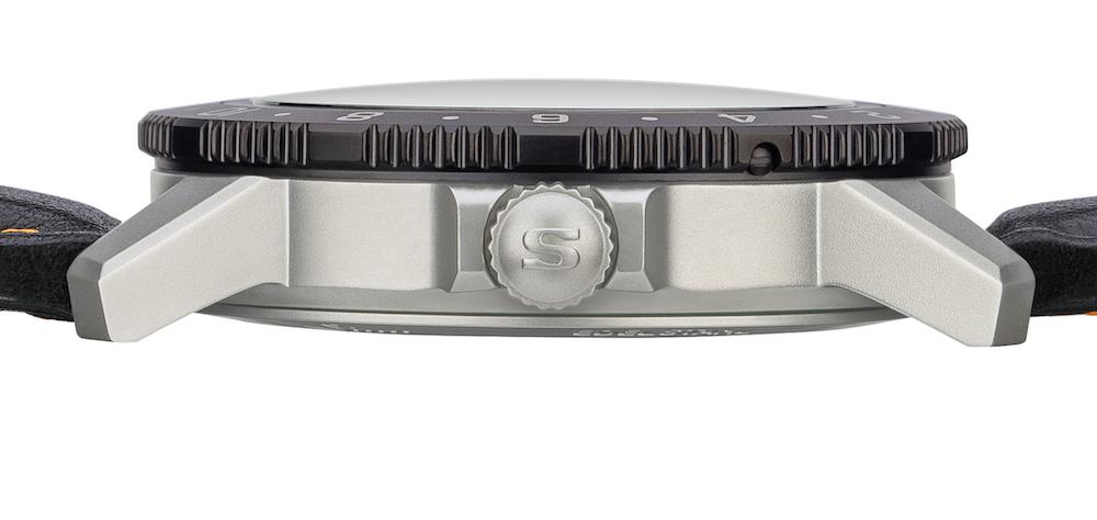 Incorporating Sinn’s legendary TEGIMENT technology, the bezel of the Sinn 105 St Sa UTC watch is engineered with a black hard coating for optimal scratch resistance while the 41mm stainless steel case is equipped with a screw down crown and case back to provide a water resistant rating of 200 metres. Housed within is the SW 330-1 self-winding mechanism, a Swiss made calibre which provides central hands for hours, minutes and seconds, date, second time zone and a power reserve of 42 hours. Each of these functions are displayed on a classic white matte dial with sporty orange accents protected by sapphire crystal glass with an anti-reflective treatment, the same material also found on the exhibition case back.