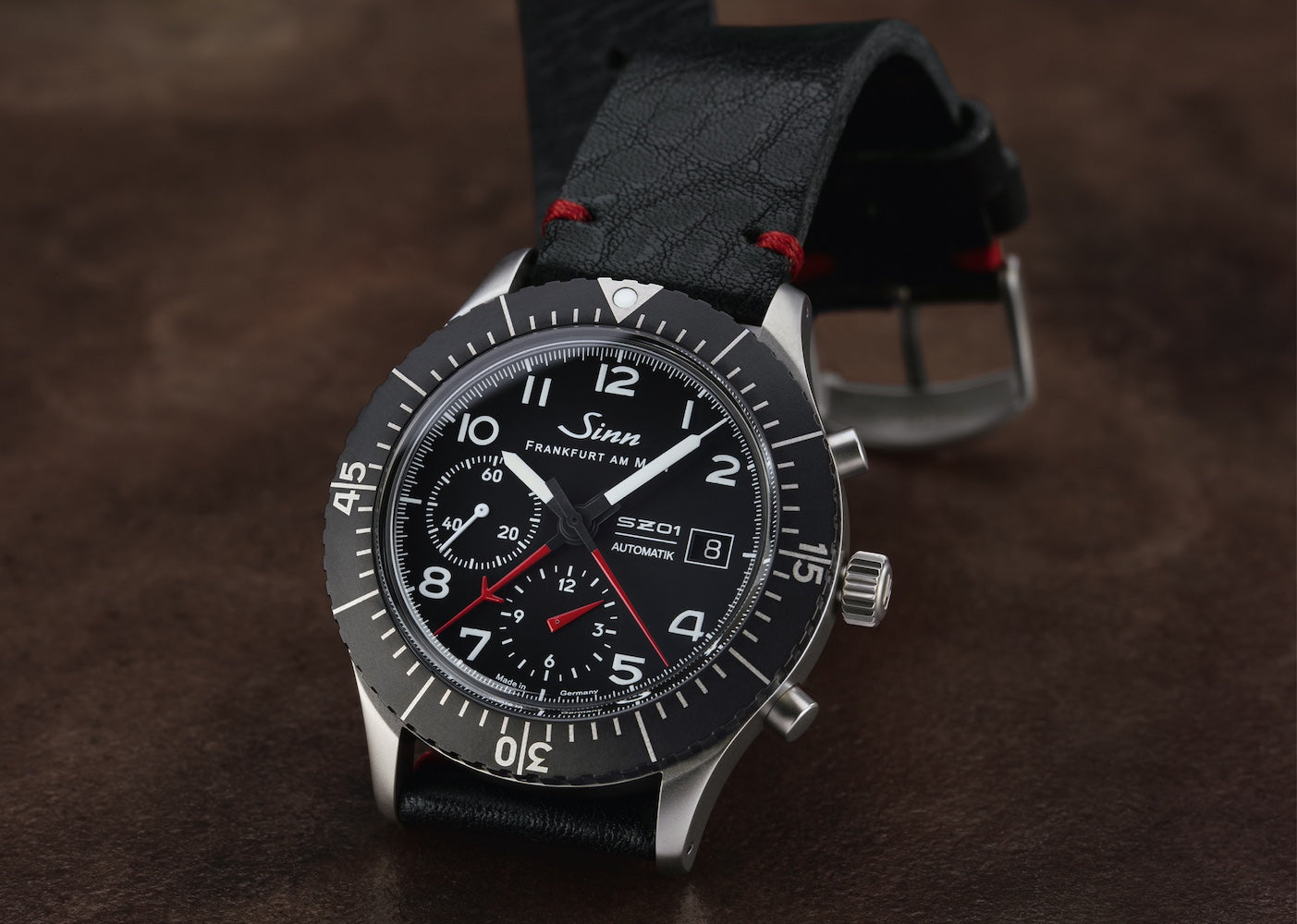 Sinn Watch 156.1 Vintage Black With Red Seam 156.030 Vintage Black. The historic pilot's chronograph with SINN chronograph movement SZ01. A unique combination of past and present: this is probably the essence of the unmistakable charm of this historic pilot's chronograph. Responsible for this is a contemporary interpretation that skilfully picks up and continues the traditional thread of a timepiece that is very popular with watch enthusiasts. In order to correctly categorise the historical lineage of the 156.1 model.