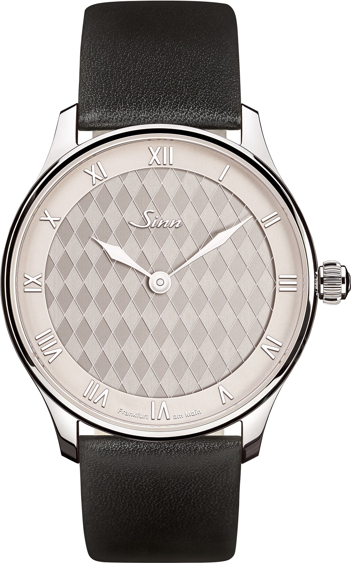 Designed in tribute to Sinn’s home city of Frankfurt am Main, this handsome Sinn 1739 Heimat watch brings to life the elegant dress watches of the 1970’s with a unique diamond-pattern dial reminiscent of Frankfurt’s popular ciders glasses. Its unique three-dimensional effect creates an unmissable interplay of light and shade engineered using a special electroforming technique which incorporates rhodium coating, a precious metal similar to platinum. This special technique gives the dial of the Sinn 1739 Heimat watch an elegant silver-white shine.