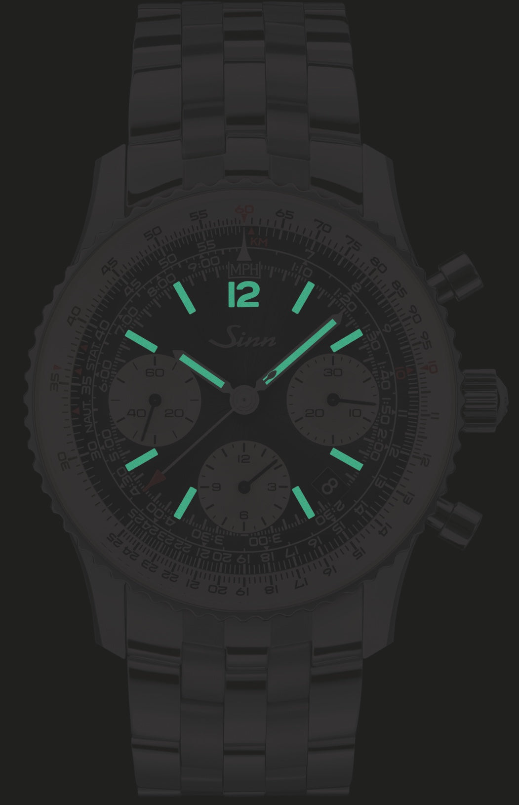 bar testifies to a feat of engineering that has long shaped the SINN brand. The Tri-Compax arrangement of the silver-electroplated counters completes the classic navigation chronograph's design. The crowning glory of this model is its column wheel chronograph movement, which has a power reserve of at least 60 hours when fully wound. Watch connoisseurs will immediately recognise that the SINN logo as an appliqué is another fine detail of a consistently sophisticated watch.