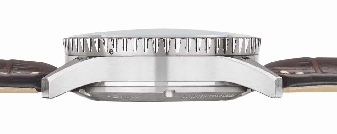St II is available as a standard model with an electroplated black dial with sunburst decoration and has been elevated to an unparalleled technical level. The functionally designed dial imprints the navigation chronograph in our product range with decades of tradition. For example, the slide rule bezel with logarithmic scale can be used to calculate times, distances or fuel consumption. Of particular note is the use of hybrid ceramic luminous elements in the indices, which are meticulously attached by hand, the number 12 and the hour and minute hands. By integrating the illuminating pigments into the respective hybrid ceramic moulded part, a high concentration of illuminant is achieved, resulting in extreme light intensity and perfect readability in the dark. However, the redesign of the case of the 903 St II in particular once again demonstrates our company's high level of innovation. This case features a silver electroplated bezel which can be smoothly operated from the outer diameter of the watch. The impressive water-resistance of 20 bar testifies to a feat of engineering that has long shaped the SINN brand. The Tri-Compax arrangement of the silver electroplated counters completes the classic navigation chronograph's design. The crowning glory of this model is its column wheel chronograph movement, which has a power reserve of at least 60 hours when fully wound. Watch connoisseurs will