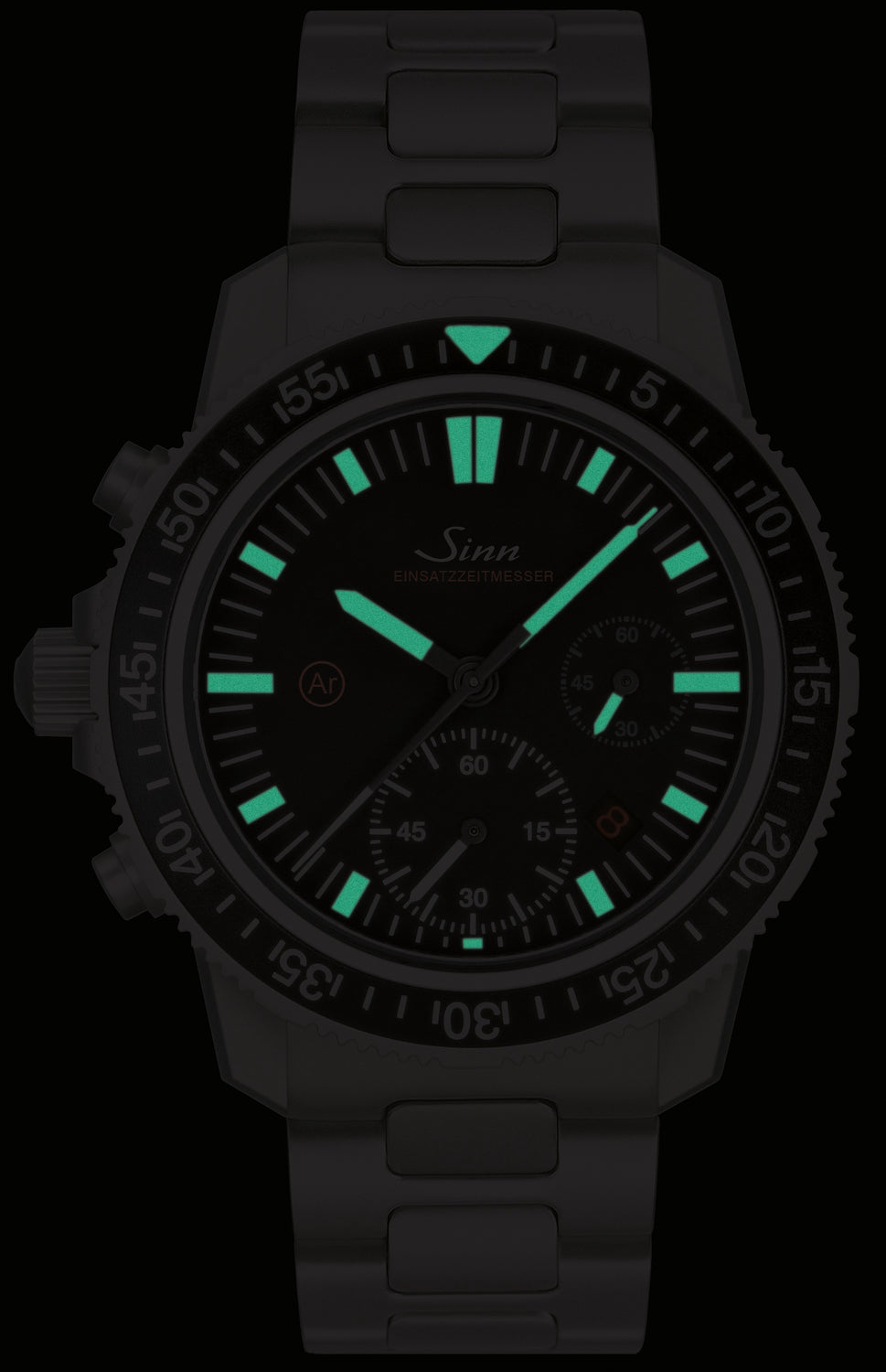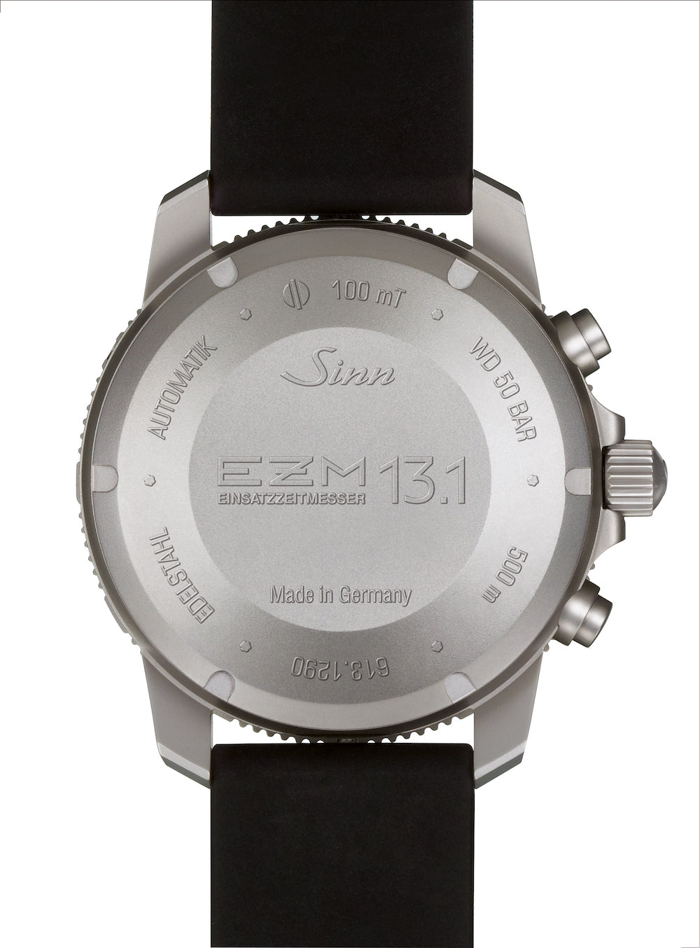 Sinn Watch EZM 13.1 Leather Strap 613.011 Leather Strap. When it comes to its features, this diving chronograph is one of the most traditional and yet technically advanced timekeeping instruments. The EZM 13.1 thus knows exactly what matters during use: a focus on the key essentials in terms of outstanding readability. To this end, we have integrated a factory modification with high functional value into the SINN chronograph movement SZ02. To enable the elapsed times to be read quickly and intuitively, the EZM 13.1 features a 60-minute counter at 6 o‘clock instead of a (generally customary) 30-minute counter. It is distinguished by an optimised dial design. To enable clearer readability, the Arabic numerals have been omitted on the EZM 13.1. This adds an optical enhancement to its technically functional