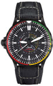 The black coated stainless steel case hides the ETA 2893-2 self winding movement which equips the Sinn EZM 7 S watch with hours minutes and seconds function, a second time zone on a 24 hour basis and a date display. Famous for their technologies, Sinn have also armed this striking timepiece with scratch resistant TEGIMENT technology, Ar-Dehumidifying technology and temperature resistant technology. Housed beneath the scratch resistant sapphire crystal glass with anti reflective treatment is a matte black dial which features, like most Sinn watches, numerals, indices and hands coated in luminescent material. This Sinn EZM 7 S watch is completed by a classic black leather strap and stainless steel buckle.