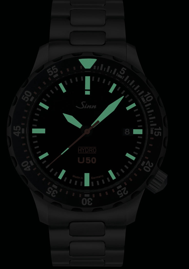 Sinn Watch U50 Hydro SDR H-Link Bracelet 1051.040 H-Link Bracelet. When impressive functionality, perfect readability and technological innovation come together, the result is versatile and robust timepieces such as the watches in the U50 HYDRO series, all of which have a comfortable diameter size of 41mm.