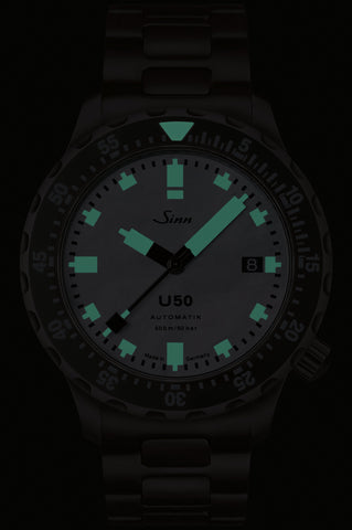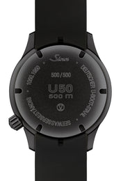 Sinn Watch U50 S Mother of Pearl S Limited Edition 1050.0201 Silicone Red. The diving watch made of German Submarine Steel with a mother of pearl dial. Each of the 500 limited edition diving watches is uniquely numbered and boasts a light reflecting dial that creates an exciting interplay of colour. This iridescent finish is the result of the shimmering black mother of pearl on the dial, which is a feature of this edition. Combining mother of pearl with a diving watch seems only natural, given that they are united by the element water. Whats more, mother of pearl is a naturally occurring product, making each dial unique. The overall design is completed by the Black Hard Coating, which highlights the striking form of the U50 S Mother of Pearl S and its minimalist display. The timepiece is also equipped with special technical features. For example, the case and crown are made of high strength German Submarine Steel. The classification company DNV GL verifies and certifies pressure resistance to a diving depth of 500m and temperature resistance and functionality in accordance with the European diving equipment standards.
