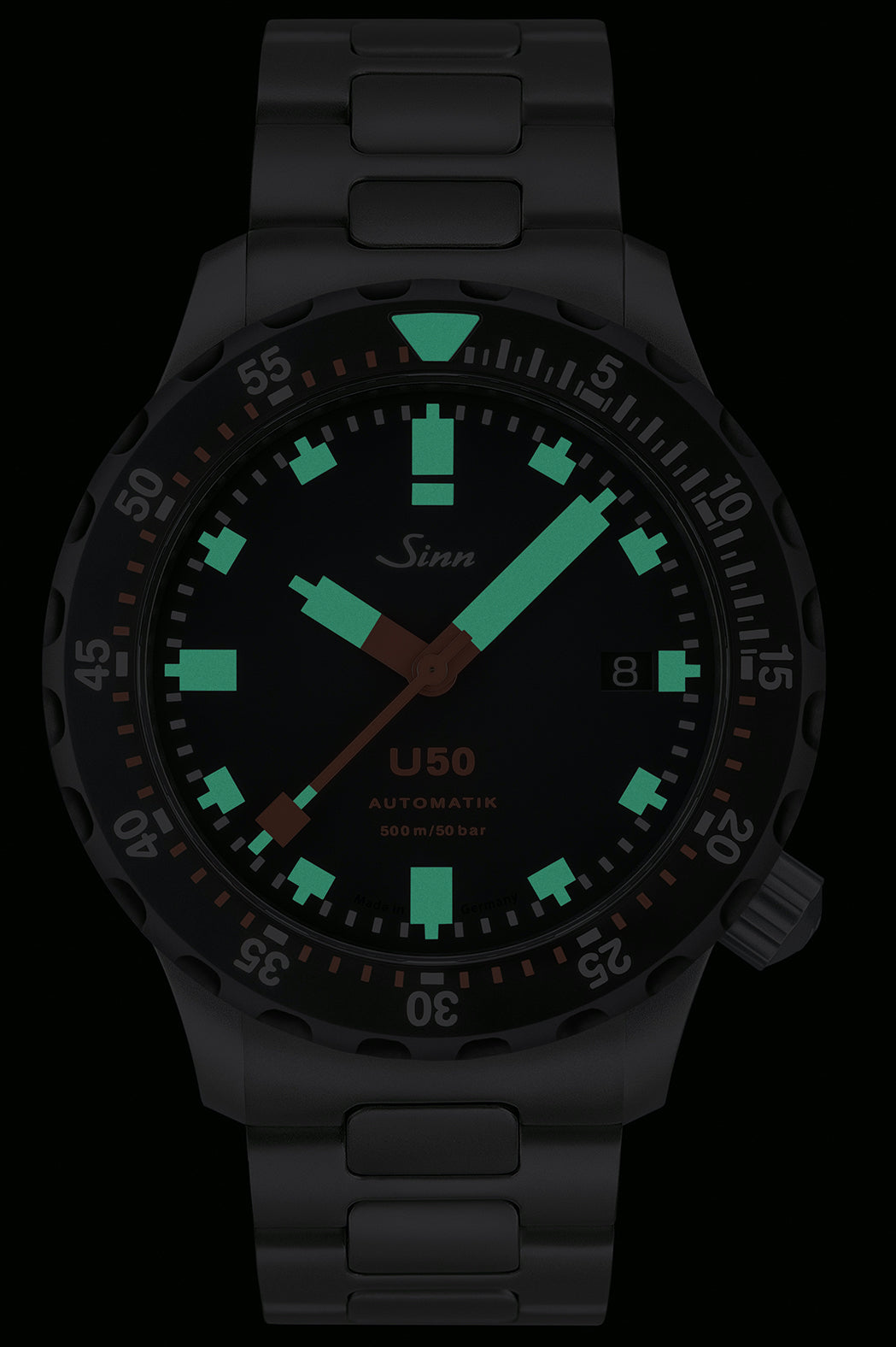 This Sinn U50 SDR watch completely redefines the notion of a professional diver’s piece with a 41mm case engineered entirely from German Submarine steel. This material is known for being extremely resistant to sea water and processes the highest levels of non-magnetic properties, keeping the automatic movement within protected. Appealing to all kinds of discerning ocean explorers, the case of the Sinn U50 SDR fitted with a captive diver’s bezel which has been treated with a black hard coating using Sinn’s famous TEGIMENT technology. This innovation ensures that the surface has a significantly greater level of protection against scratches.