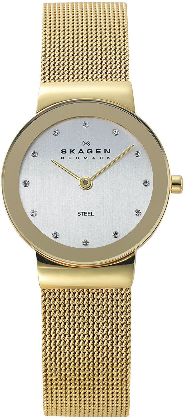 Skagen Watch Freja Ladies. We designed the Freja Steel Mesh Watch, the name Freja means ñladyî in Danish„with fresh and understated details. A 26 mm stainless steel case features a mirrored rim. Twelve crystals marking the hours add just the right amount of sparkle to the clean design of the dial, while a sleek stainless steel mesh band adds an additional touch of polish.