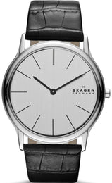 Skagen Watch Theodor Mens. We created the Theodor Leather Watch with minimal detailing to allow the sophisticated design to come through. A gleaming 39 mm stainless steel case houses a dial with quiet strokes marking the hours and two hand movement. The supple leather strap with buckle closure lends a relaxed feeling to this refined dress watch for men.