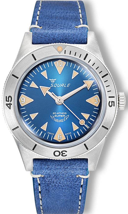 Squale Super Squale Big Arrows Blue Watch SUPERSSABL.PBL. The Super Squale model was launched in the 60s, and immediately became one of the most popular watches of the Squale brand. Indeed it was not by chance that in 1959 charles Von Büren registered the Super-Squale trademark together with the Squale brand itself, symbolic of a watch destined to become iconic in the world of dive watches.