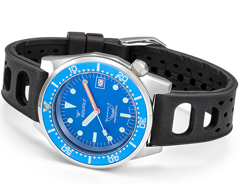 Squale Watch 1521 Ocean 1521OCN.NT. Since the 1950s, the name Squale and the classic Shark logo, Squale translates to Shark, have come to mean one thing, professional dive watches. Squale introduced their first 1000m dive watch with a unique crystal on flexible mountings that didn not use or need a Helium release valve. Squale started to supply the elite corps of a large number of armed forces,