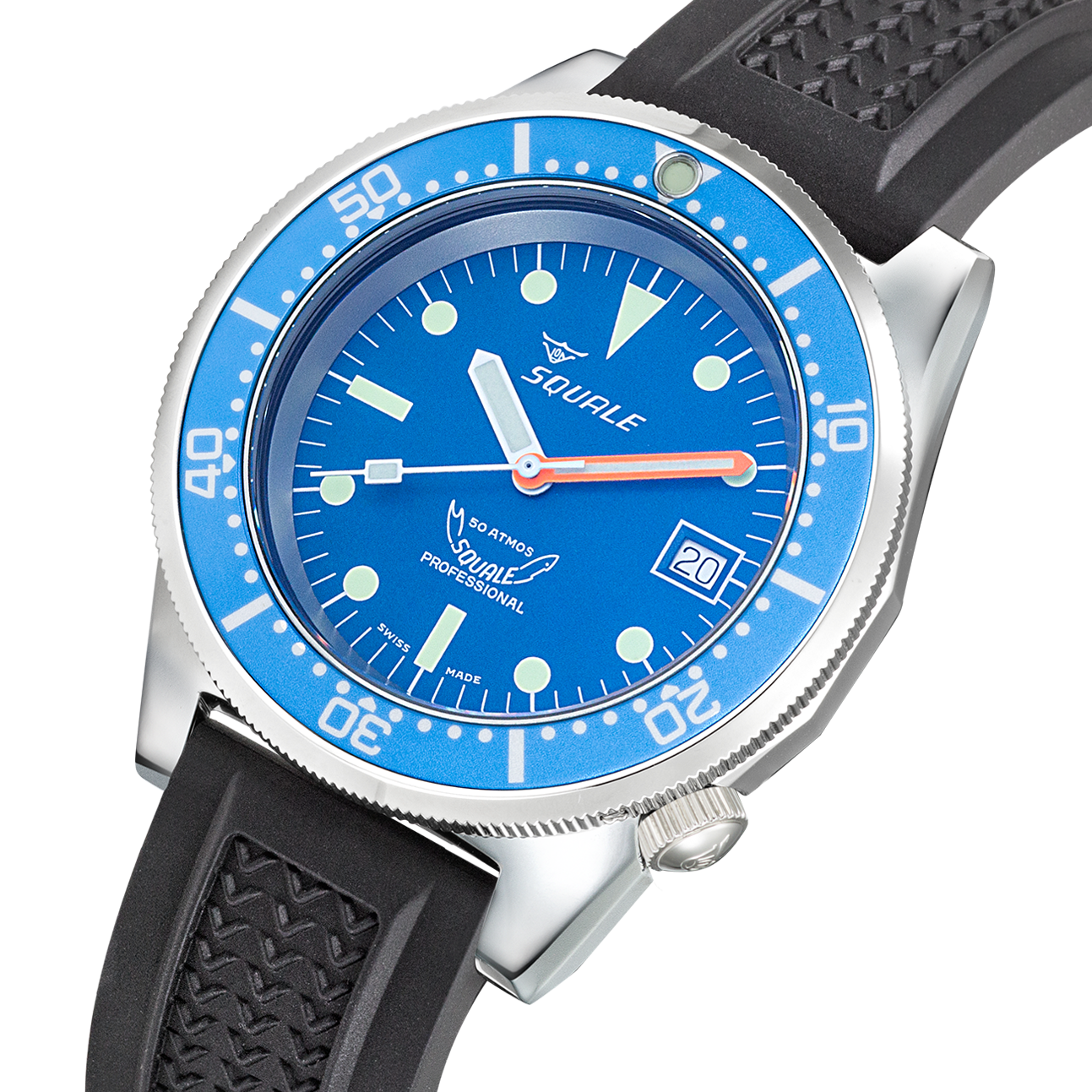 Squale Watch 1521 Ocean Rubber 1521OCN.VO. Since the 1950s, the name Squale and the classic Shark logo, Squale translates to Shark, have come to mean one thing, professional dive watches. Squale introduced their first 1000m dive watch with a unique crystal on flexible mountings that did not use or need a Helium release valve. Squale started to supply the elite corps of a large number of armed forces.