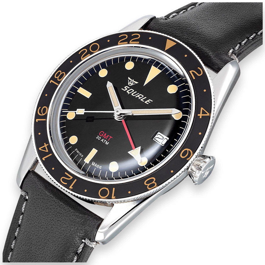 Squale Watch Sub-39 GMT Vintage Black SUB-39GMTV.PN. The Sub-39 model was created to celebrate sixty years of the Squale brand. Introduced in 2019, the anniversary model was released as a limited edition of just 150 pieces. Today the Sub-39 collection features a wide range of watches, all inspired by the past.