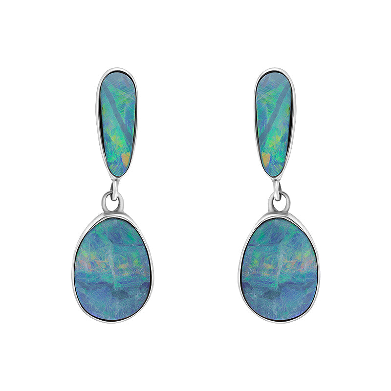 Sterling Silver Abstract Opal Doublet Drop Earrings D